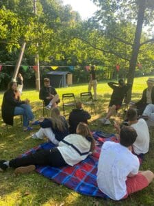 Stovykla prasidėjo „Carito“ organizuojamame jaunimo palapinių festivalyje, Lūginės kaime. Jo metu dalyviai įsitraukė į kūrybines dirbtuves, klausėsi įtraukiančio podcast’o, mėgavosi gyva muzika ir vakarą užbaigė tradiciniais lietuvių liaudies šokiais prie laužo. Po nakties palapinėse, jaunuoliai leidosi į piligriminį žygį iki Marijampolės Šv. arkangelo Mykolo bazilikos, kur dalyvavo atlaiduose.